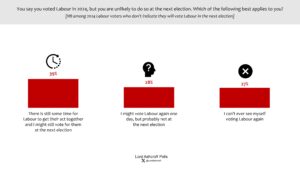 Among 2024 Labour voters who do not currently say they will vote for the party at the next election, just under four in ten say there is still time for the party for their act together and they might still return next time. The remainder were evenly divided between saying they might vote Labour again one day but probably not at the next election and that they can’t ever see themselves voting Labour again.