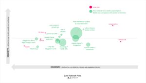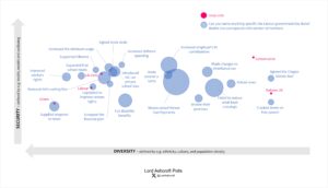 Our political map shows that small boats, free speech and tax were most likely to be mentioned in Conservative and Reform-supporting parts of the map, while support for Israel was most often mentioned in Green territory in the bottom-left quadrant. Positive actions were heavily clustered around the centre of gravity of Labour and Lib Dem support.