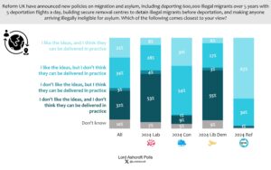 A majority overall said they liked the ideas, but only just over a fifth also said they thought they could be delivered in practice. Two thirds of Reform UK voters said they both liked the ideas and thought they could be delivered. Of those who said they liked Reform’s ideas on dealing with illegal migration but didn’t think they could be delivered in practice, more than seven in ten said they should be tried anyway because any progress would be good. Just under one fifth said they should not try to implement them as it could prove an expensive failure.