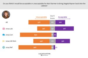 Only just over a quarter – including only just over half of 2024 Labour voters – said it would be acceptable for Angela Rayner to return to the Cabinet. A majority said it would be unacceptable.