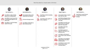 In a deceptively festive but in fact strategically critical question, we found that Keir Starmer was thought the leader most likely to make a boring speech at a Christmas party, sneak off from a Christmas get-together to do some work, and watch the King’s Christmas broadcast live at 3pm on Christmas Day.