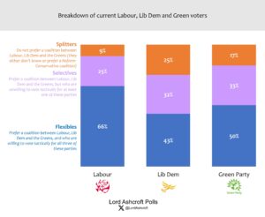 - Selectives, who prefer a Labour-Lib Dem-Green coalition but are unwilling to vote for at least one of these parties